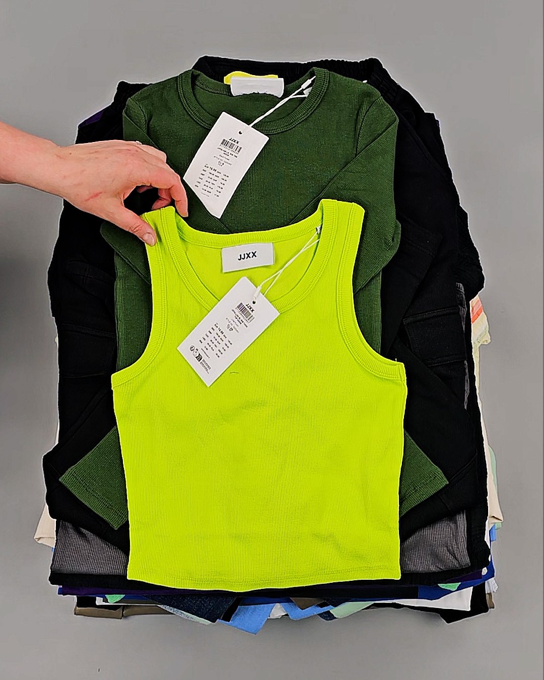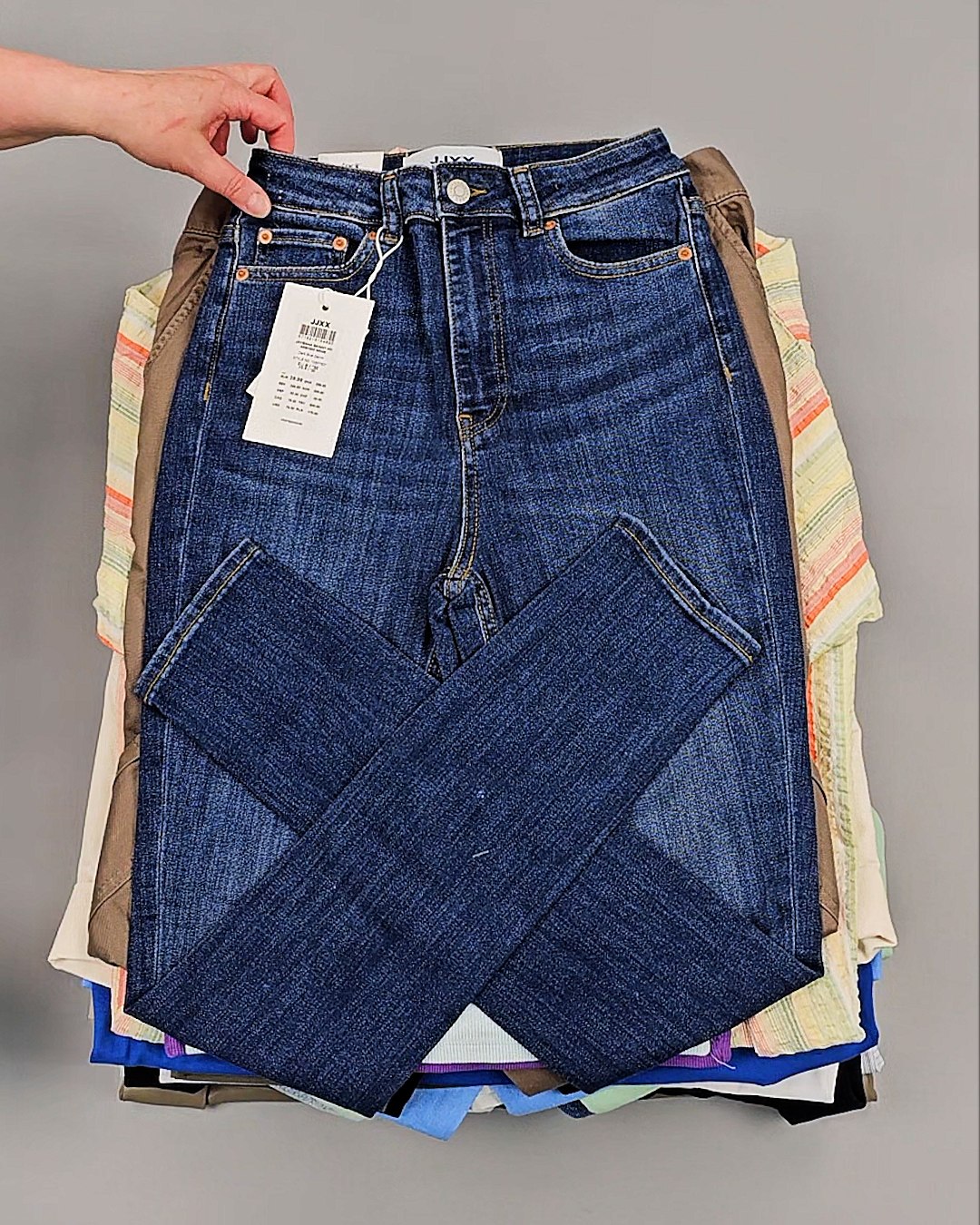 Среди нашего ассортимента всегда в наличии Сток в количестве более 450 тонн. Каждую неделю новые привозы из Европы, в том числе источником оптовых поставок бренда JJXX является ДАНИЯ.